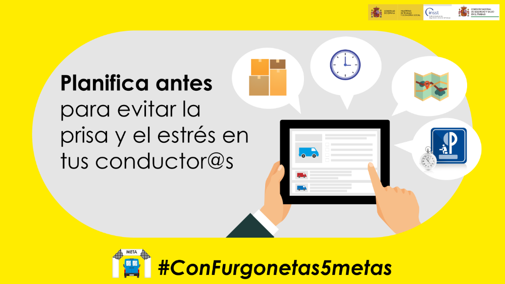 Cumpliendo tus obligaciones de adoptar medidas de prevención técnicas y organizativas que mejoren la seguridad de tus trabajador@s en la conducción de furgonetas, y su conocimiento de los riesgos específicos a los que se enfrentan, contribuyes a reducir estos accidentes. Por eso, te pedimos que te sumes al reto: ponte 5 metas que salvan vidas.
