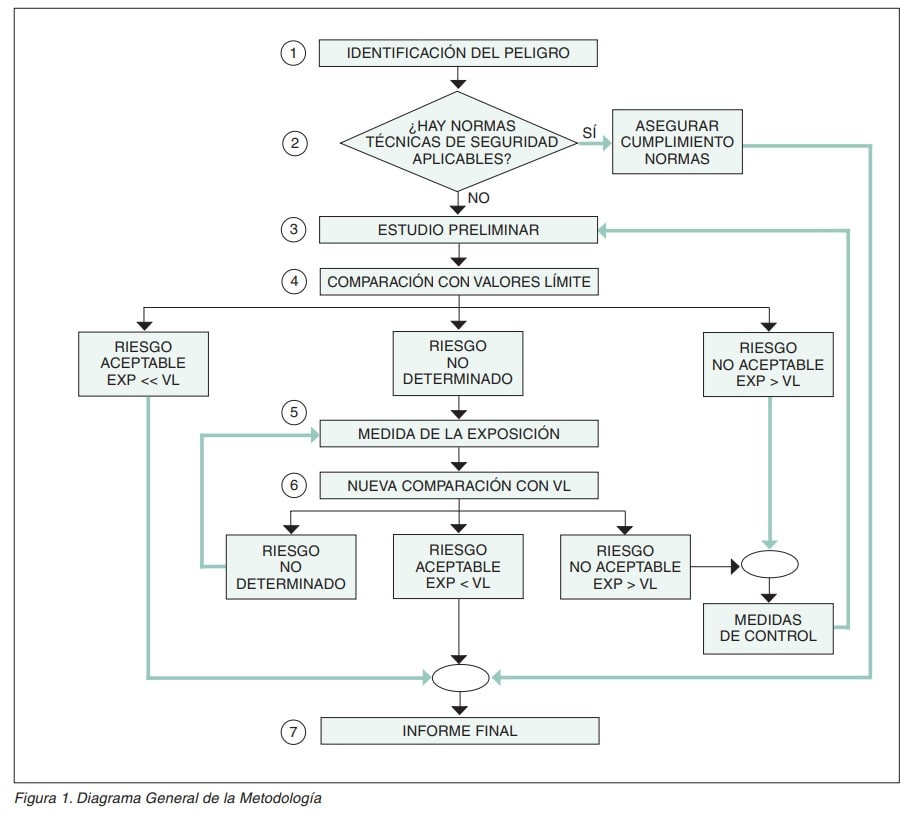 La metodología aquí descrita quiere ser una guía para todos aquellos técnicos de prevención que tengan que realizar una evaluación de puestos de trabajo (PT) con exposición a estas radiaciones. Está desarrollada en forma de diagramas de flujo, que sintetizan cada una de las etapas de la evaluación. No obstante, debido a la extensión limitada de estas Notas Técnicas de Prevención, se recomienda, ante cualquier duda, consultar el texto original de la Directiva 2006/25/CE, así como el resto de las referencias de la bibliografía. La figura 1 describe el “Diagrama General de la Metodología”.
