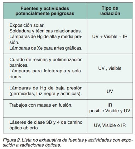 En la figura 2 se enumeran una serie de fuentes de exposición y actividades consideradas potencialmente peligrosas, junto con las bandas o rangos espectrales asociados a cada una de ellas.