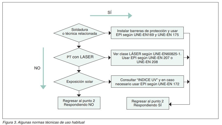Hasta que no se desarrollen Normas Técnicas para evaluar y estimar la exposición a radiación óptica, tal y como establece la Directiva 2006/25/CE en su artículo 4.1, el límite entre lo que se considera “riesgo aceptable” y “riesgo no aceptable”, debe establecerlo el técnico de prevención, basándose en las características del puesto de trabajo y en su propia experiencia profesional.
