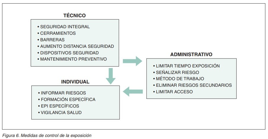 La figura 6 es un resumen de las principales medidas que se utilizan para controlar los riesgos por exposición a radiación óptica.