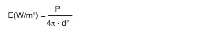 P es la potencia radiante, expresada en watios y d la distancia a la fuente en metros. El resultado es una estimación de la exposición (irradiancia), comparable directamente con los valores límite.