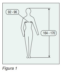 La ropa deberá llevar marcados los intervalos correspondientes a las dimensiones de control en centímetros tal y como se indica en pictograma de la figura 1.