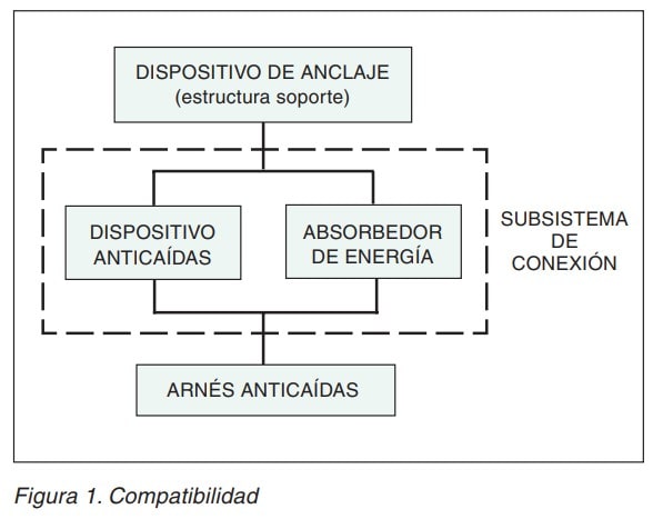 De forma general, puede decirse que un sistema anticaídas está formado por un dispositivo de prensión del cuerpo y un subsistema de conexión (figura 1).
