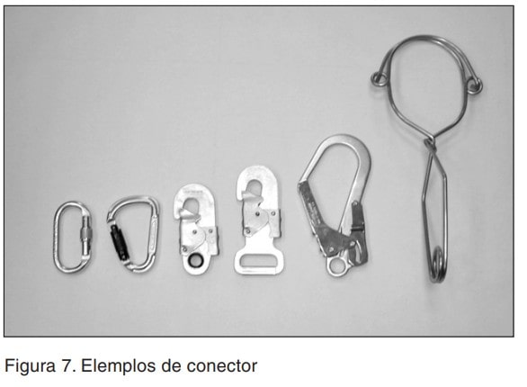 Es un equipo metálico provisto de apertura que se utiliza para enganchar entre sí los diferentes componentes del sistema anticaídas y para su conexión al dispositivo de anclaje situado en la estructura soporte (figura 7).