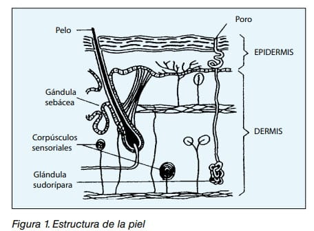 En la figura 1 se muestra un esquema de la piel y de sus principales estructuras.