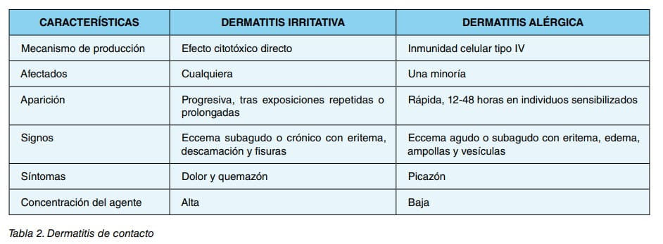 En las dermatitis de contacto se pueden distinguir las irritativas y las alérgicas.