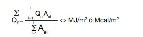 Qsi :Densidad de carga de fuego, ponderada y corregida, de cada uno de los sectores o áreas de incendio que componen el edificio industrial, en MJ/m2 ó Mcal/m2.