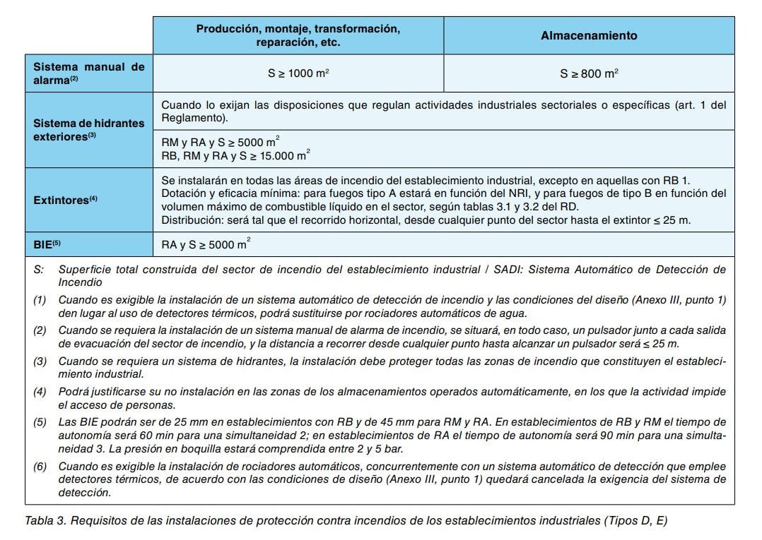 3. REQUISITOS DE LAS INSTALACIONES DE PROTECCIÓN CONTRA INCENDIOS (Anexo III del Real Decreto)