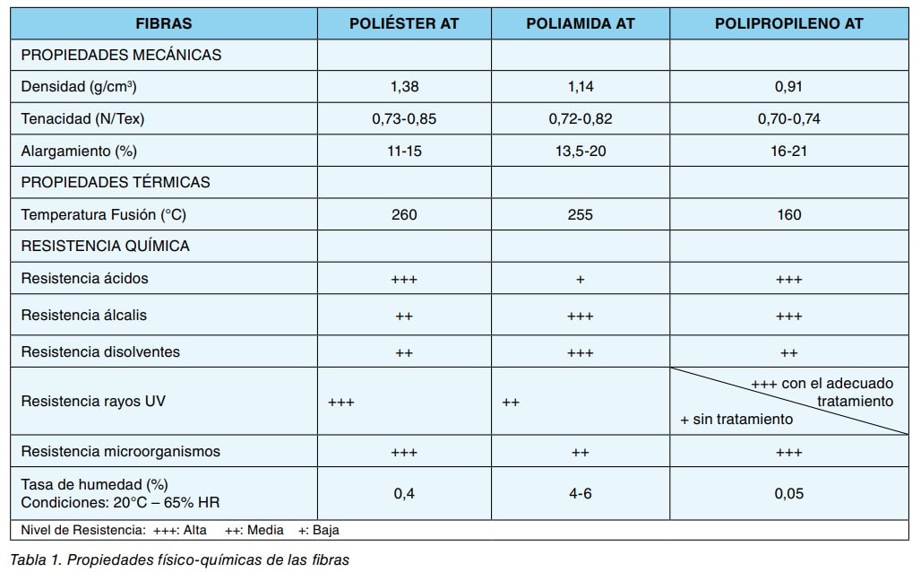 Estas diferentes fibras tienen propiedades mecánicas diferentes así como comportamientos diferentes según la exposición al calor o a los productos químicos.