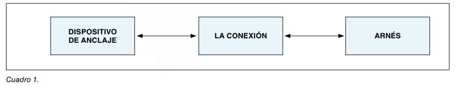 - El equipo de conexión entre el arnés y la línea de anclaje (más adelante se desarrolla este punto).