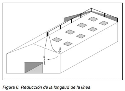 - Es preferible que, al parar una caída, la línea no entre en contacto con elementos externos. De nuevo la altura de la línea y el vano son determinantes para conseguirlo.