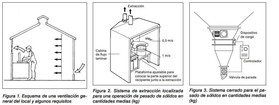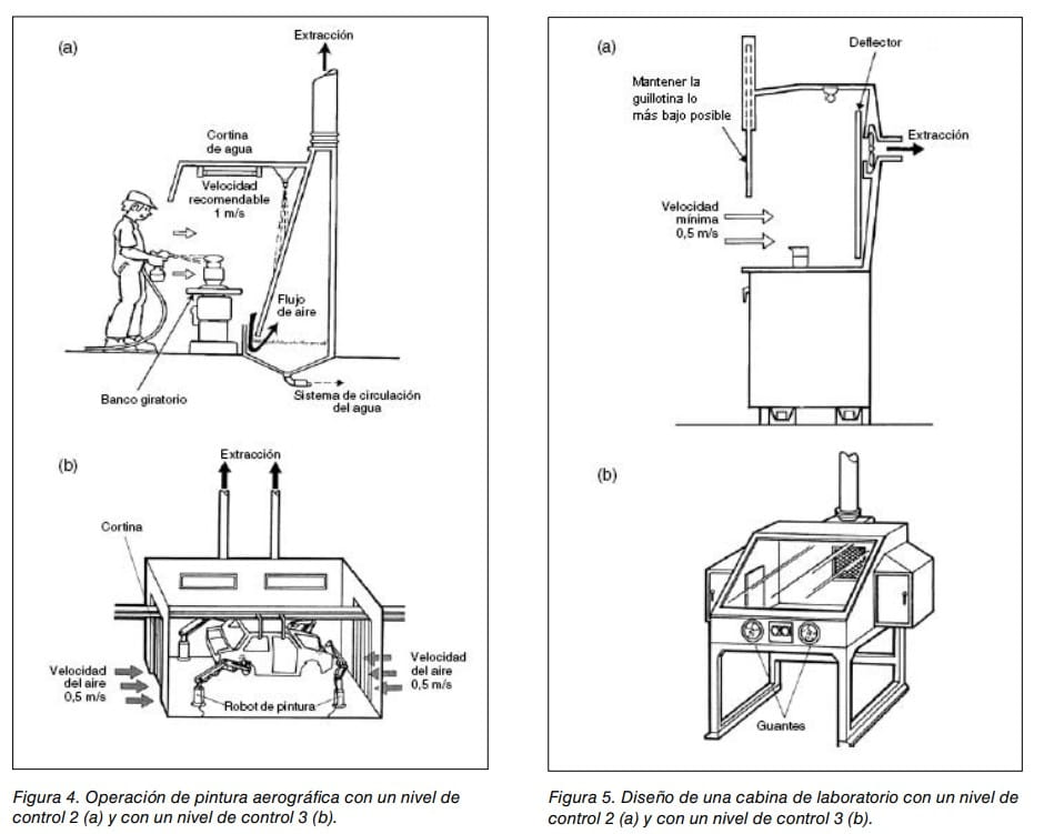 Si trasladamos el ejemplo a una operación de pintura aerográfica, las soluciones ofrecidas según los niveles de control serían las que se muestran en la figura 4 y para vitrinas de laboratorio en la figura 5.