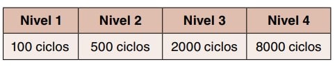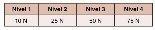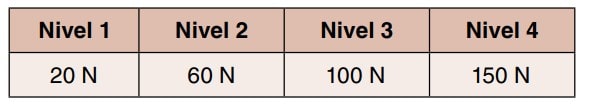 En función de la fuerza de perforación requerida en Newtons (N), se establecen cuatro niveles de prestación.