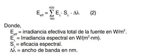 Para la radiación UV (180 400 nm), se utiliza la siguiente expresión:
