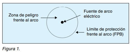 La NFPA (National Fire Protection Association) es un organismo americano, que se creó en 1896, y que se encarga de elaborar normas y recomendaciones para la prevención y la protección de los lugares de trabajo. Entre las normas que elabora se encuentra la norma NFPA 70E. El arco eléctrico, fue incluido por primera vez, como un riesgo eléctrico más a evaluar, en la quinta edición (1995). En su versión actual (octava edición, 2009), la evaluación y análisis del arco eléctrico, se detallan en el apartado 130.3 y anexo D. Este anexo establece métodos para calcular la energía calorífica incidente sobre los trabajadores expuestos a este fenómeno y ofrece recomendaciones para la selección y uso de equipos de protección individual (EPI) que deben portarse dentro de la “Zona de peligro frente al arco”, que queda delimitada a partir del “Limite de protección frente al arco” (Flash Protection Boundary (FPB), en su terminología anglosajona). Fig.1.