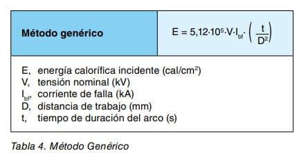 Si dicha instalación o condiciones de trabajo, no se ajustan a ninguno de los ámbitos de aplicación de dichos métodos, o no se puede recopilar toda la información necesaria para aplicar los mismos, se puede utilizar un método genérico, basado en el estudio de Ralph H. Lee(1), para trabajos en o en la proximidad de aparamenta eléctrica al aire libre.