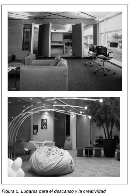 No hay recetas para concebir como debería ser un espacio para la creatividad; además cada persona es diferente y puede preferir espacios bien singulares para sentirse a gusto. Pero lo cierto es que si se trata de un espacio colectivo, las personas habrían de sentirse completamente libres, cómodas y estimuladas para el aporte de ideas, sin tensión o preocupación que pudiera perturbar el proceso creativo. ¿No es entonces en cierto modo compatible el descanso con la creatividad? (ver figura 5).