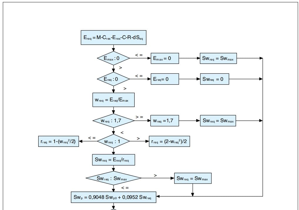 - Partiendo de la ecuación del balance térmico se calcula Ereq, wreq y SWreq .