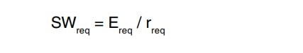 La sudoración requerida (SWreq) se obtiene al dividir el flujo de calor por evaporación requerido por la eficiencia evaporativa (rreq) o fracción de sudor que condensa debido a variaciones pronunciadas de la humedad local de la piel: