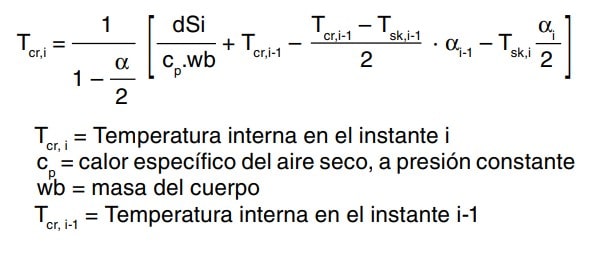 Estos términos adquieren importancia en el método, ya que a partir de la determinación del almacenamiento de calor se estiman la temperatura interna (tcr) y, posteriormente la temperatura rectal (tre), cuyo valor determina el tiempo máximo de permanencia.