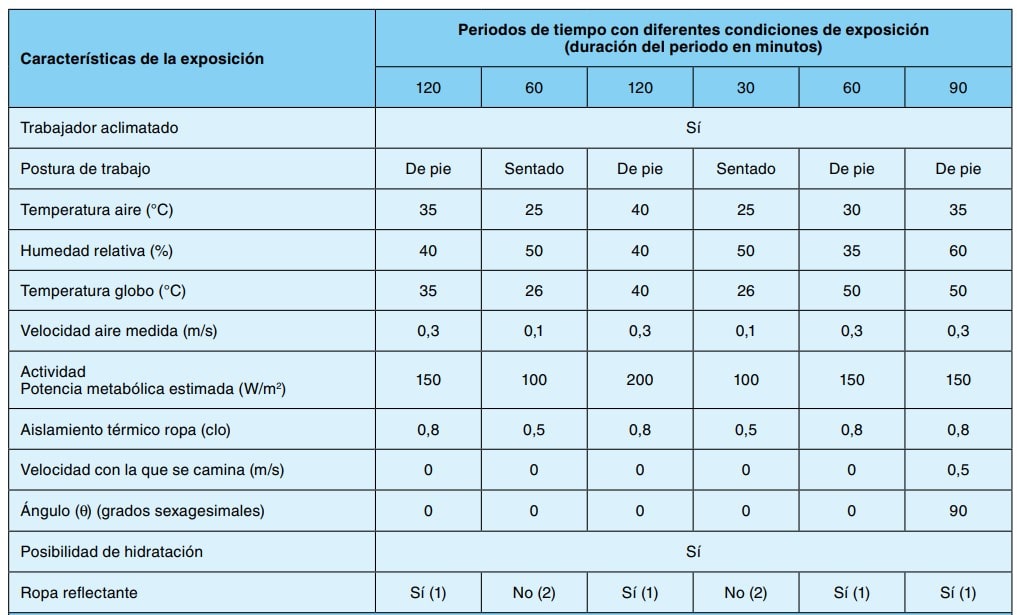 (2) UNE-EN ISO 7933:2005. Ergonomía del ambiente térmico. Determinación analítica e interpretación del estrés térmico mediante el cálculo de la sobrecarga térmica estimada.
