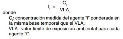 Ante efectos antagónicos se procedería a considerarlos como independientes, y en cualquier caso respetar los valores límite de exposición de cada agente específico. Es probable que la información disponible sobre este punto sea muy limitada. b) Si no se obtiene información sobre el punto a), considerar los efectos como aditivos. En tal caso, y cuando los agentes tengan establecido valor límite de exposición individual, proceder a la suma de los índices de exposición. De acuerdo con lo expuesto en el apéndice 4 de la Guía Técnica del Real Decreto 374/2001, se calcula el índice de exposición (diario o de corta duración) para cada agente como: