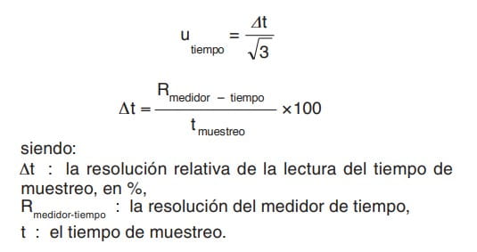 La componente de la incertidumbre típica asociada al tiempo de muestro (Utiempo), se puede calcular asumiendo una distribución rectangular de acuerdo con la expresión: