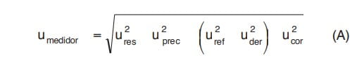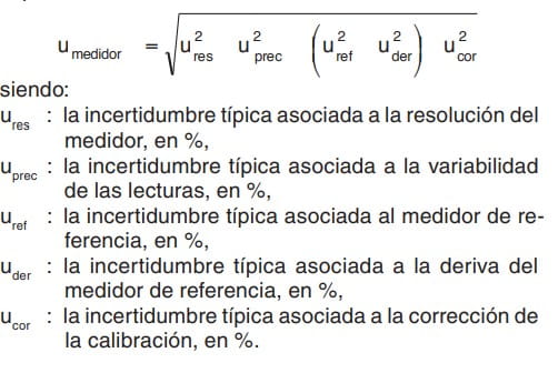 donde los términos de la segunda parte de la expresión son las incertidumbres típicas calculadas en los apartados 4, 5 y 6.