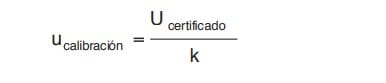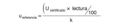 La incertidumbre asociada a la referencia se calcula a partir de los datos indicados en el certificado de calibración de acuerdo con la expresión: