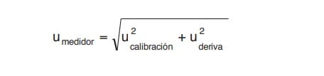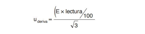 - la incertidumbre asociada a la deriva del medidor, de acuerdo con la expresión: