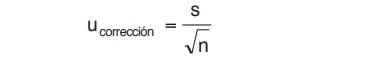 La incertidumbre asociada a la corrección se calcula como la desviación típica de la media: