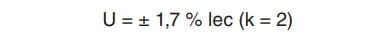 Dado que la incertidumbre absoluta de cada punto de calibración es proporcional a la indicación del instrumento, lec, la incertidumbre expandida se puede expresar en %.