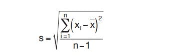 - Desviación típica experimental: Para una serie de n mediciones de un mismo mensurando, es la magnitud s que caracteriza la dispersión de los resultados, dada por la ecuación: