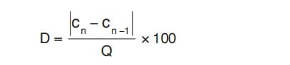 El coeficiente de variación experimental de las lecturas del caudal se puede calcular a partir de los resultados de n ≥ 10 mediciones repetidas del mismo, realizadas durante los ensayos de verificación de las bombas descritos en CR-01 (6) o de los resultados de mediciones anteriores.