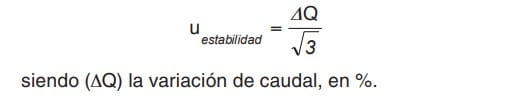 La incertidumbre típica asociada a la medida del caudal se evalúa a partir de datos experimentales de repetibilidad, de acuerdo con la expresión: