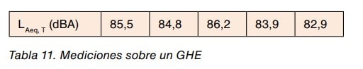 Se obtienen los siguientes valores de nivel de exposición equivalente indicados en la tabla 11.