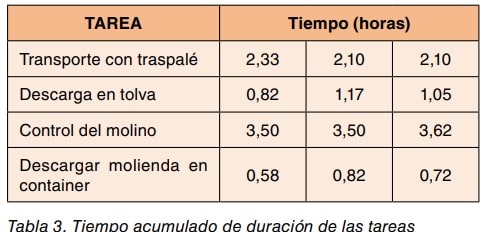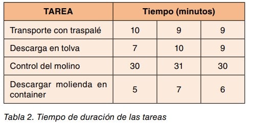 - descargar molienda en container Se puede optar por preguntar el tiempo de duración de cada tarea pero para mayor seguridad, en esta ocasión se mide el tiempo de duración de las operaciones que se indica en la tabla 2.
