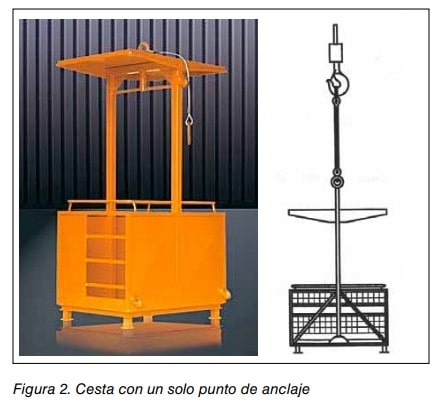 - La elevación y suspensión de la cesta con el equipo de elevación debe realizarse bajo la supervisión de una persona asignada a este cometido. Al respecto, nos remitimos a los comentarios realizados en la NTP 955 en el apartado de normas de uso.