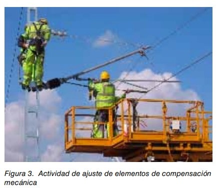 - Comprobación de estado de los componentes, desajustes, desgastes, altura de hilo de contacto, etc. Ver figura 3.