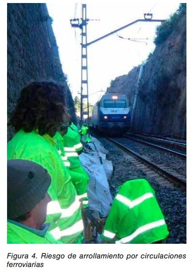 - Tránsito de operarios por el balasto, terraplenes, accesos a la vía, etc.