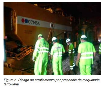 El riesgo de arrollamiento ferroviario tiene su origen en la existencia de circulaciones ferroviarias en las propias vías de trabajo o colindantes o en la presencia de maqui naria ferroviaria en las vías de trabajo.