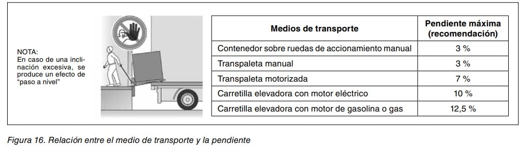 En función del medio de transporte utilizado se reco mienda una pendiente máxima. (Figura 16).
