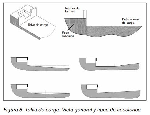 En el caso en que el suelo de la nave se encuentre por debajo de la superficie de carga del camión, se requiere la instalación de una tolva de carga. Si las condiciones constructivas lo permiten, también se puede elevar el suelo de la nave.