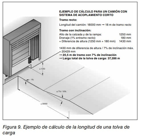 Para la salida del agua es recomendable una inclinación de 1 % en el tramo recto en dirección al pliegue. De esta forma se evita que el agua retenida sobre el camión fluya en dirección al abrigo de muelle (figura 8).