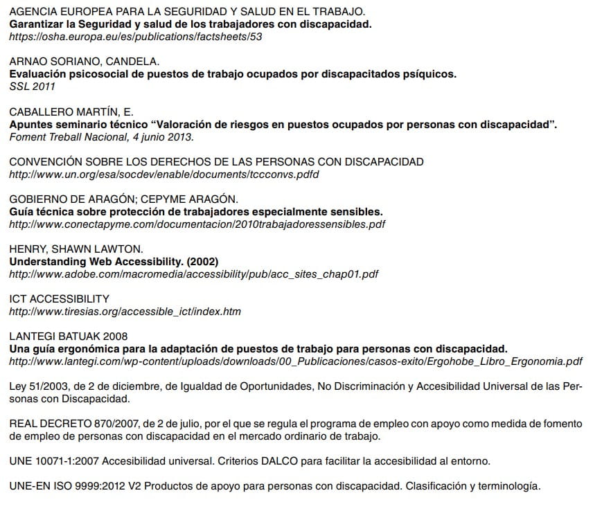 - la provisión a la persona de medios que le permitan conocer todas estas características (formación, información) así como otros recursos de adaptación al entorno (plan de acogida, provisión de apoyo…). Por lo que se refiere a la formación en prevención de riesgos, garantizar que una persona con discapacidad no esté en situación de desventaja respecto a la formación, instrucción e información en materia de seguridad y salud.