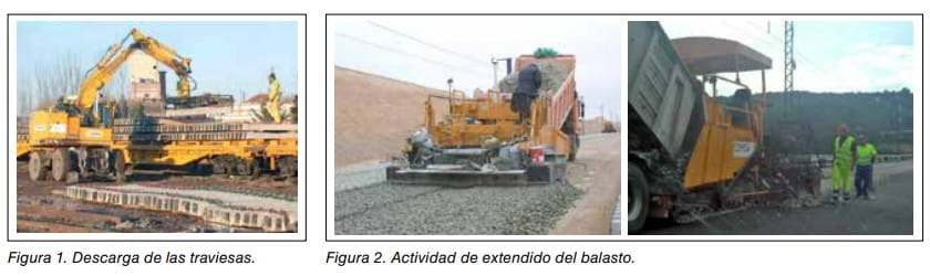 Operaciones de construcción de la vía sobre balasto