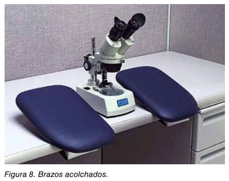- Situar el microscopio lo más cerca y alto posible para mantener la cabeza en una posición vertical o utilizar aparatos de diseño ergonómico (Fig.9).