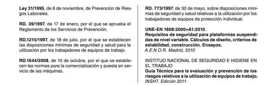 Con carácter general el marco regulador de la obligación de realizar el mantenimiento a un equipo de trabajo se encuentra en el RD.1215/1997. En su Art. 3. 5 contempla que “el empresario adoptará las medidas necesarias para que, mediante un mantenimiento adecuado, los equipos de trabajo se conserven durante todo el tiempo de utilización en unas condiciones tales que satisfagan las disposiciones del tercer párrafo del apartado 1. Dicho mantenimiento se realizará teniendo en cuenta las instrucciones del fabricante o, en su defecto, las características de estos equipos, sus condiciones de utilización y cualquier otra circunstancia normal o excepcional que pudiera influir en su deterioro o desajuste”.