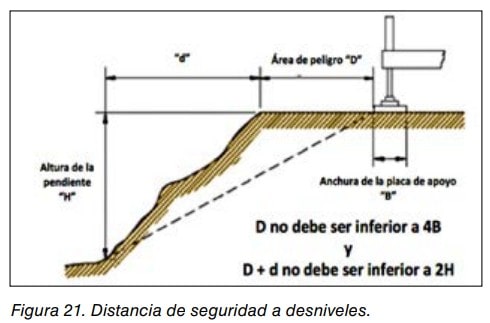 Las bases de apoyo de los estabilizadores deben estar construidas de forma que puedan adaptarse a suelos que presenten una pendiente o desnivel de por lo menos de 10°. Ver Figura 2.